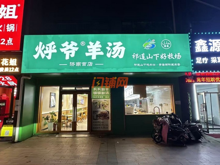 1、本店位于历城区华龙路核心路段,紧挨着烂豆花火锅+门头醒目,客流看得见。